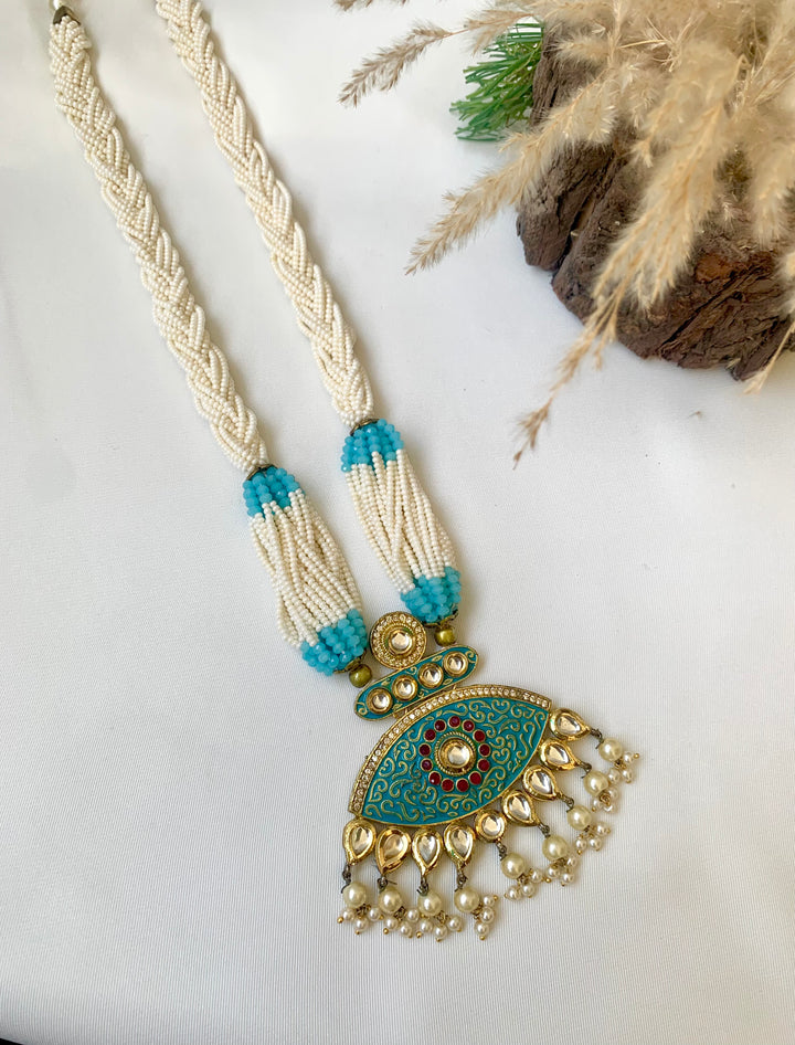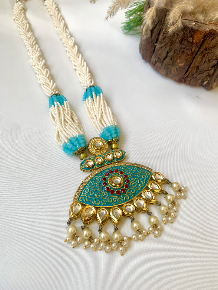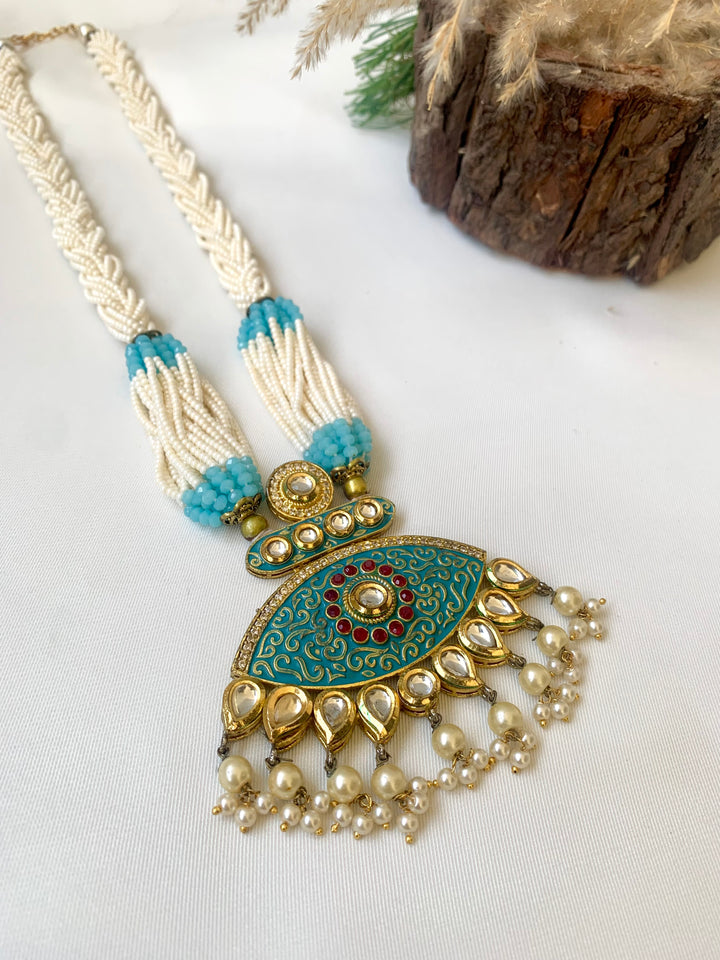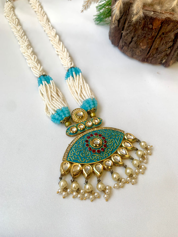 Adorn yourself with our Poth Moti Paroi Kundan Indian Mala, a masterpiece of traditional elegance.