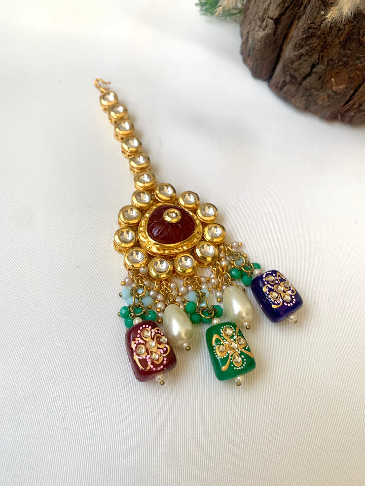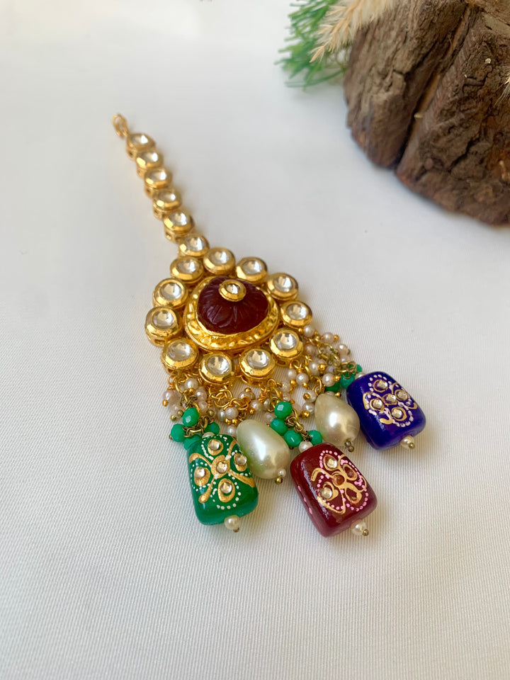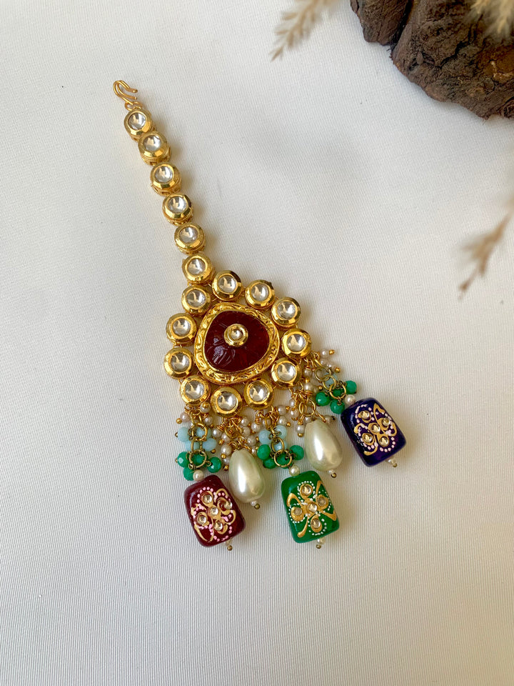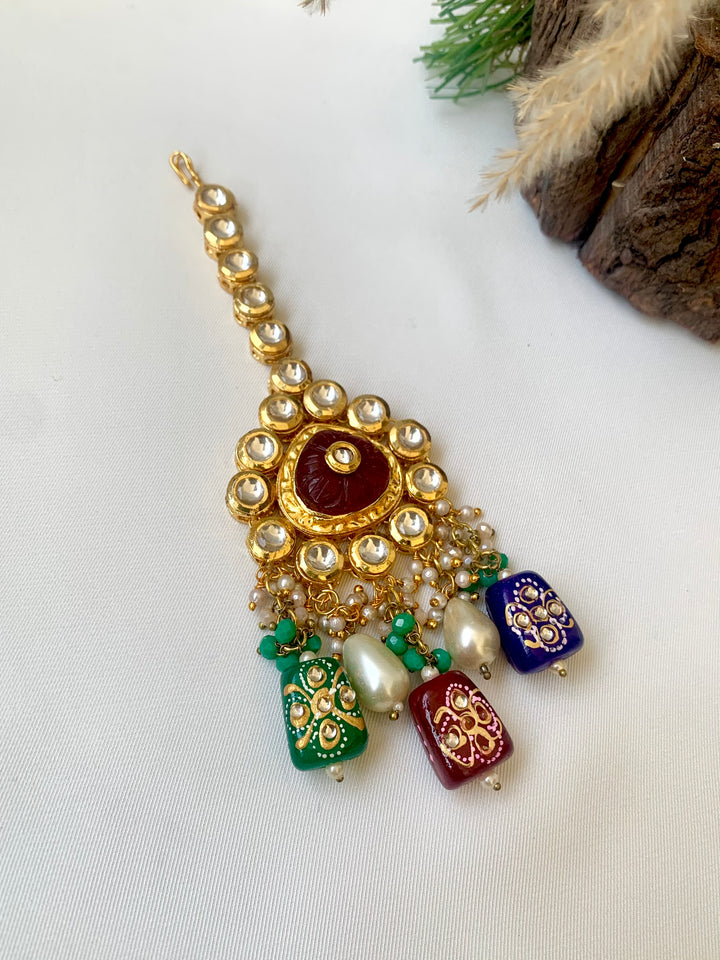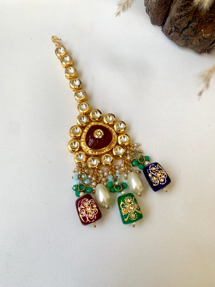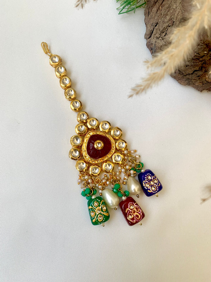 Add a regal charm to your look with our Indian Rajasthani Kundan Heavy Tika, designed with intricate craftsmanship and traditional detailing.