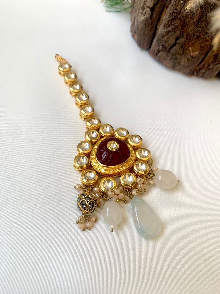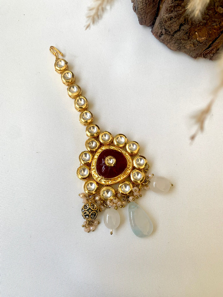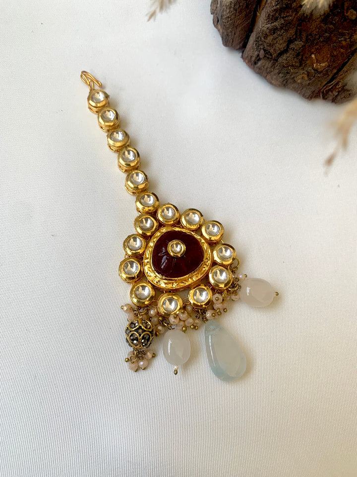 Add a regal charm to your look with our Indian Rajasthani Kundan Heavy Tika, designed with intricate craftsmanship and traditional detailing.