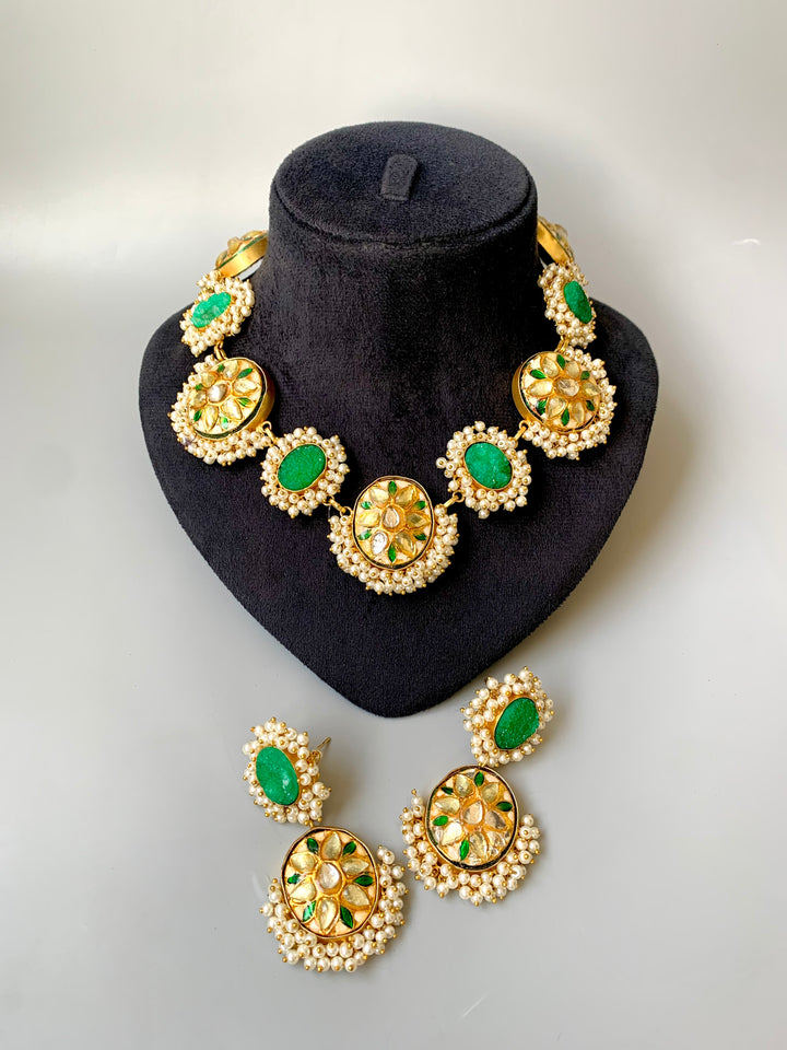 Step into timeless beauty with our Indian Rajasthani Thappa Necklace Set, paired with matching earrings.