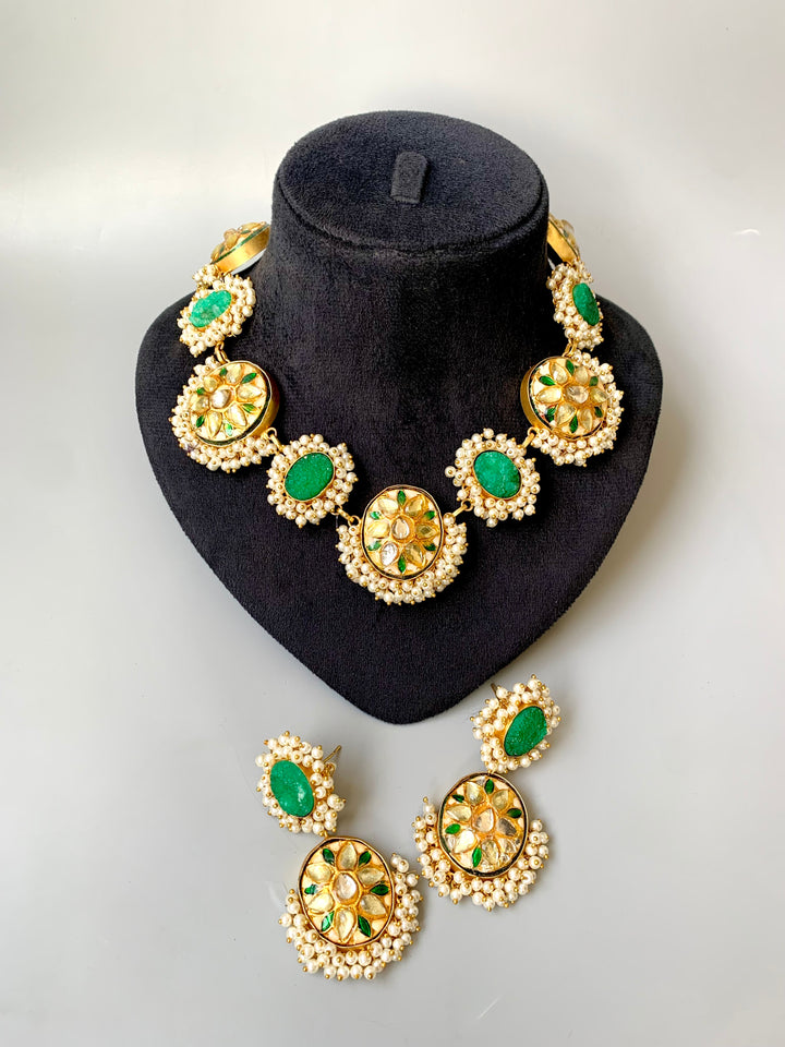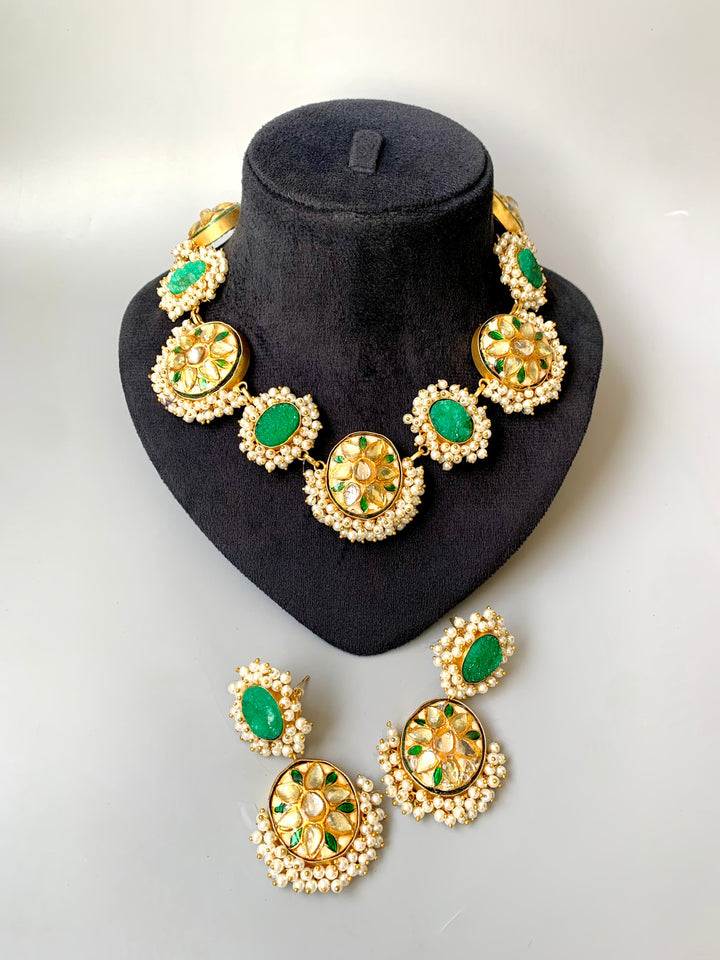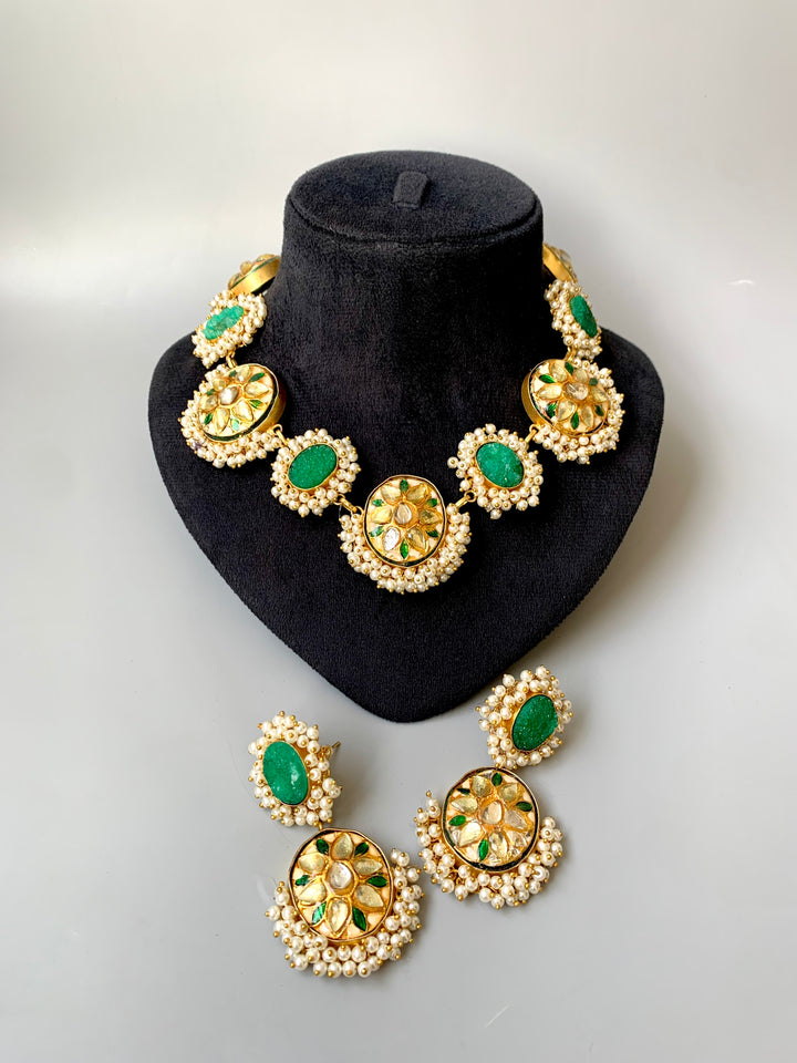 Aamilah Step into timeless beauty with our Indian Rajasthani Thappa Necklace Set, paired with matching earrings.Handcrafted with intricate detailing and a rich traditional finish, this piece brings the royal essence of...