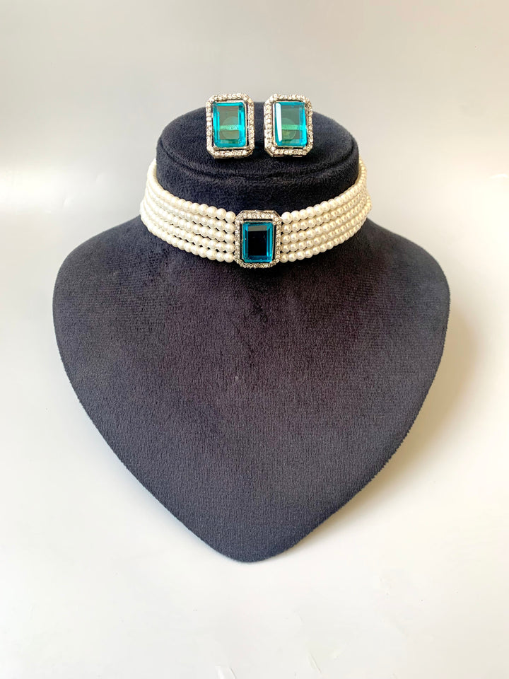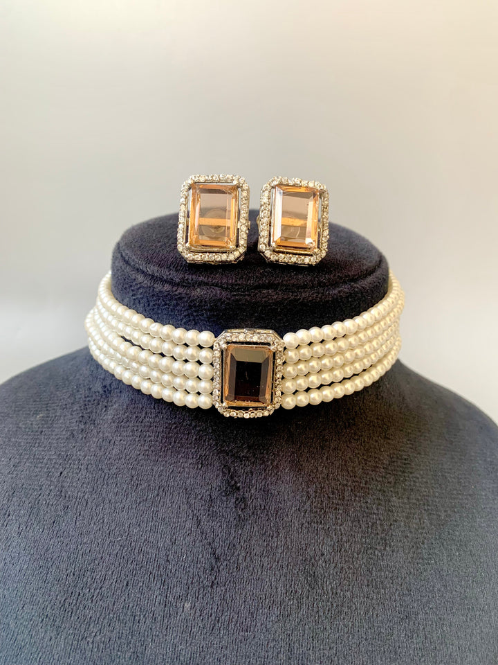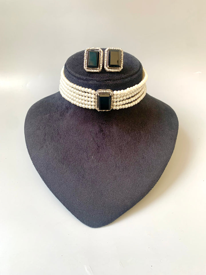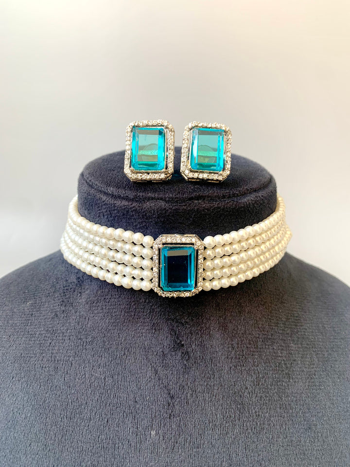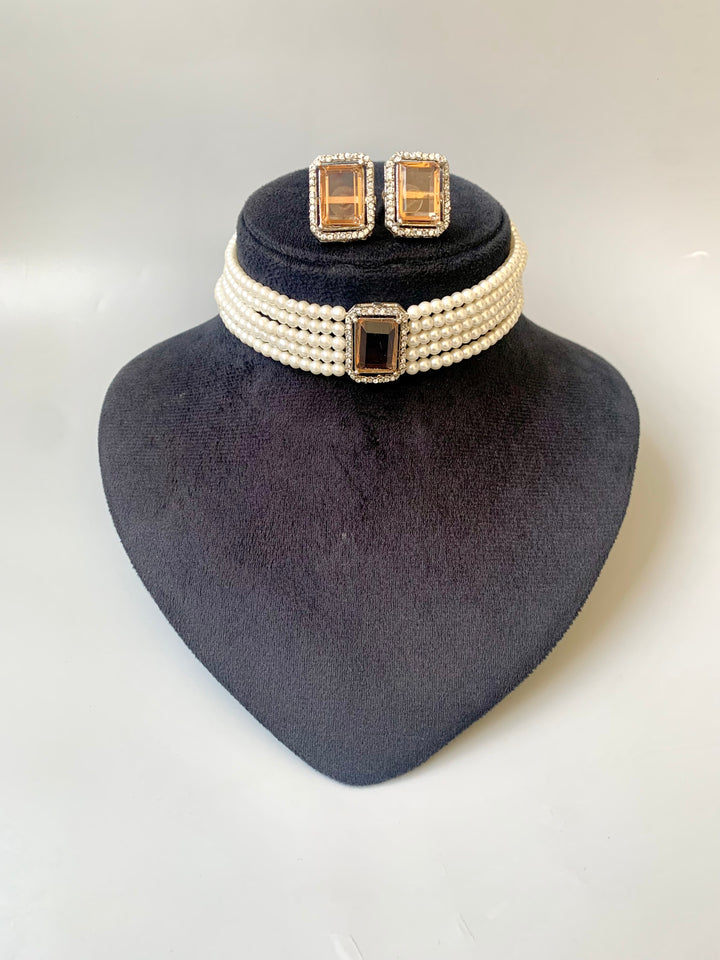 Add a touch of charm to your look with our Indian Hydro Choker Set, beautifully designed with white bead parooi and matching studs.
