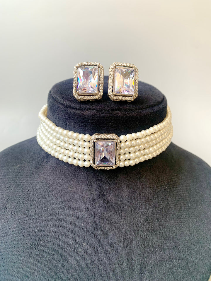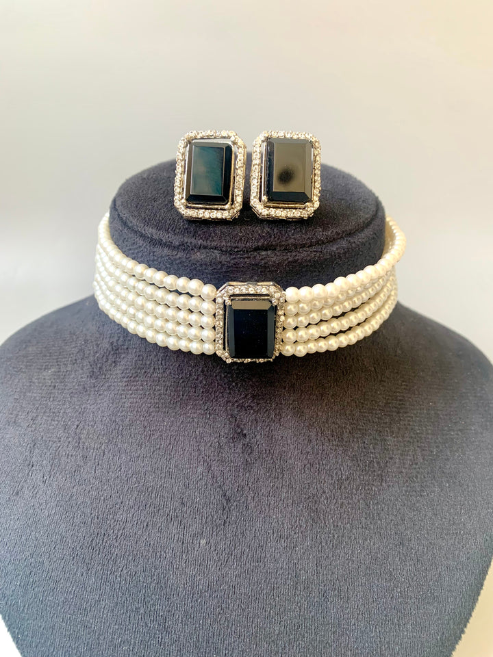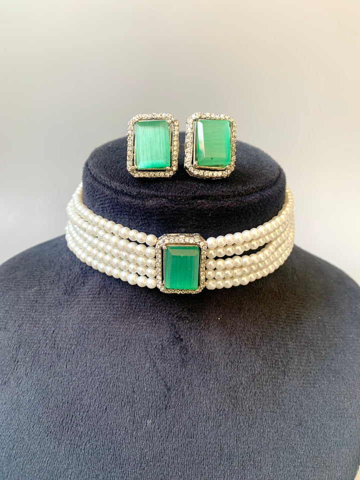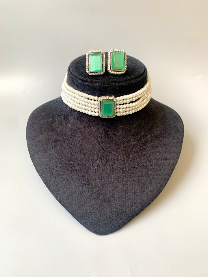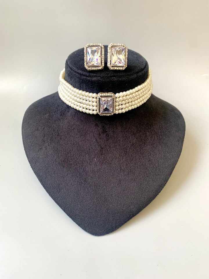 Add a touch of charm to your look with our Indian Hydro Choker Set, beautifully designed with white bead parooi and matching studs.
