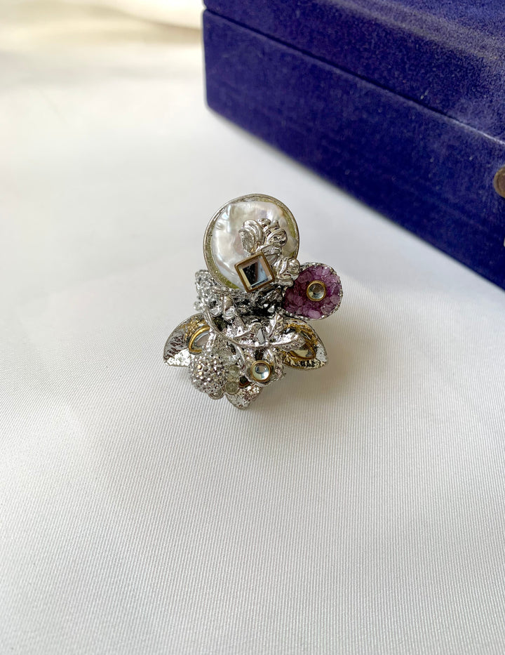 Embrace timeless beauty with our Turkish Handmade Adjustable Ring, featuring a stunning baroque stone set in elegant silver plating. 💍🇹🇷