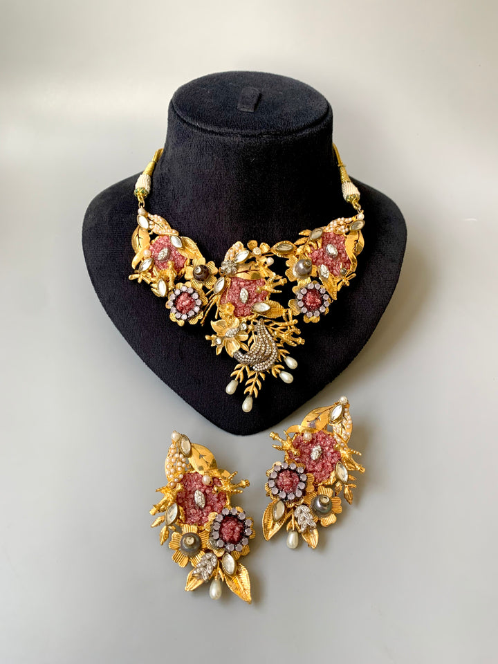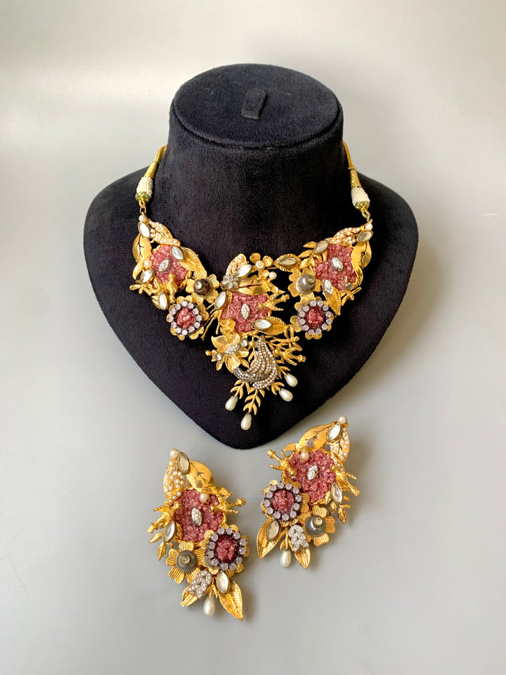 Make a bold style statement with our Turkish Crush Necklace Set, beautifully crafted with premium gold-plated finishing and paired with matching designer earrings.