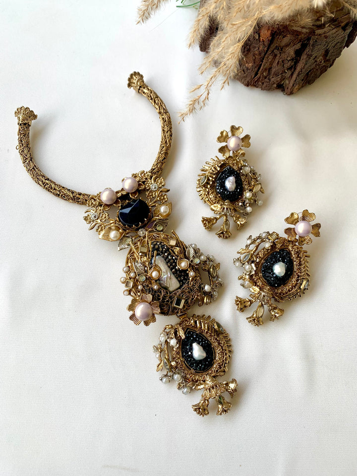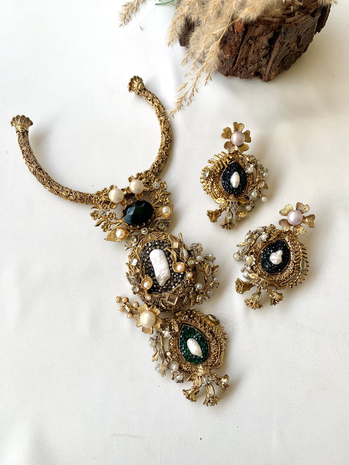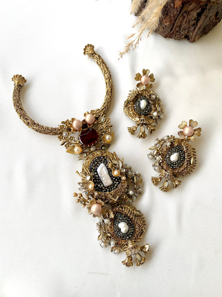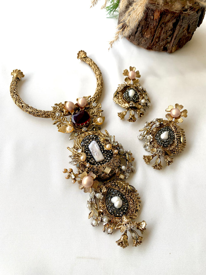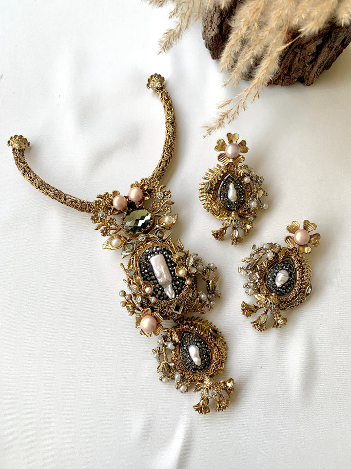 Ajanta ✨ Royal Fusion of Cultures ✨ Experience timeless elegance with our Turkish Necklace Set featuring matching earrings in stunning Rajasthani Hasli style. 💎This masterpiece combines Turkish craftsmanship with traditional Indian...