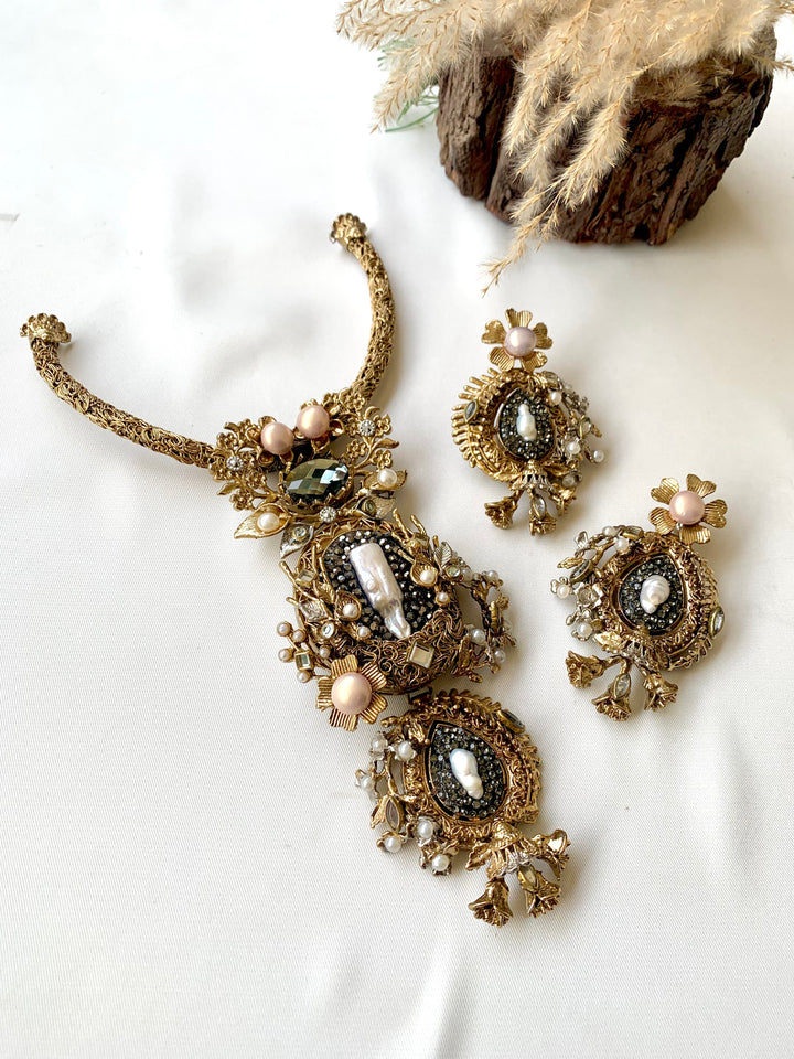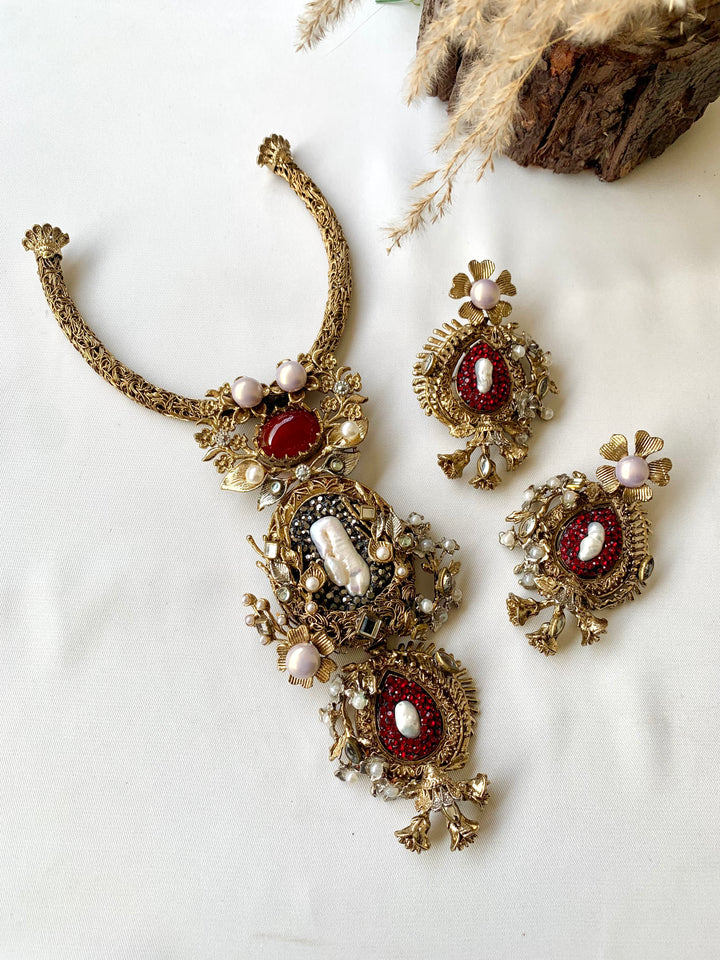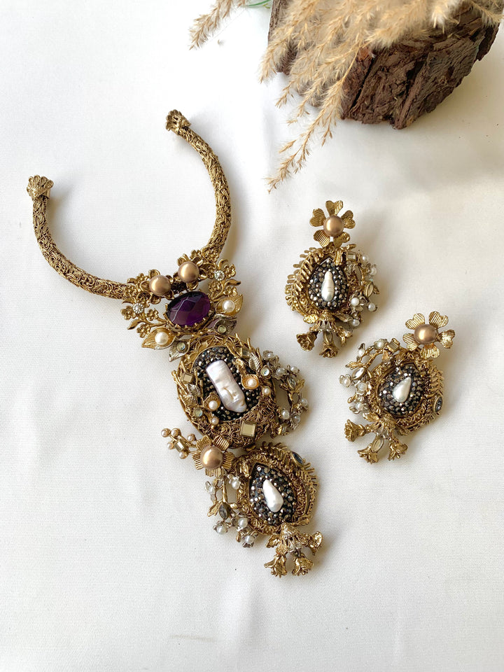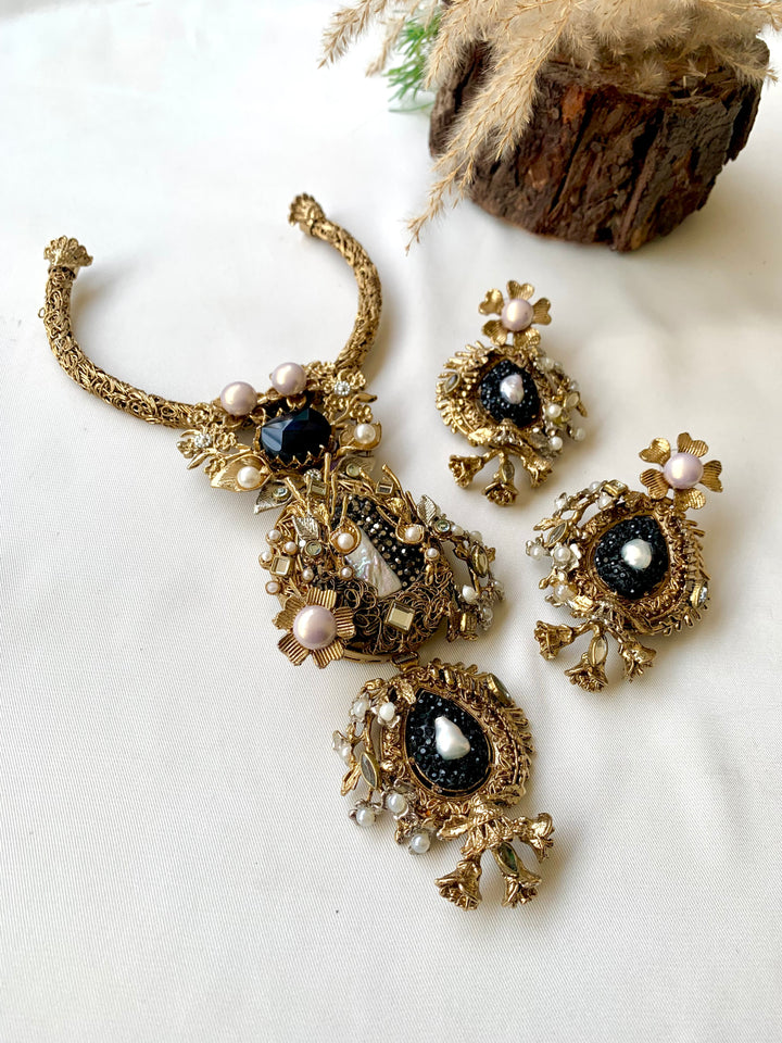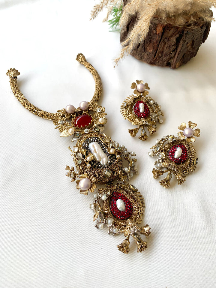 Ajanta ✨ Royal Fusion of Cultures ✨ Experience timeless elegance with our Turkish Necklace Set featuring matching earrings in stunning Rajasthani Hasli style. 💎This masterpiece combines Turkish craftsmanship with traditional Indian...