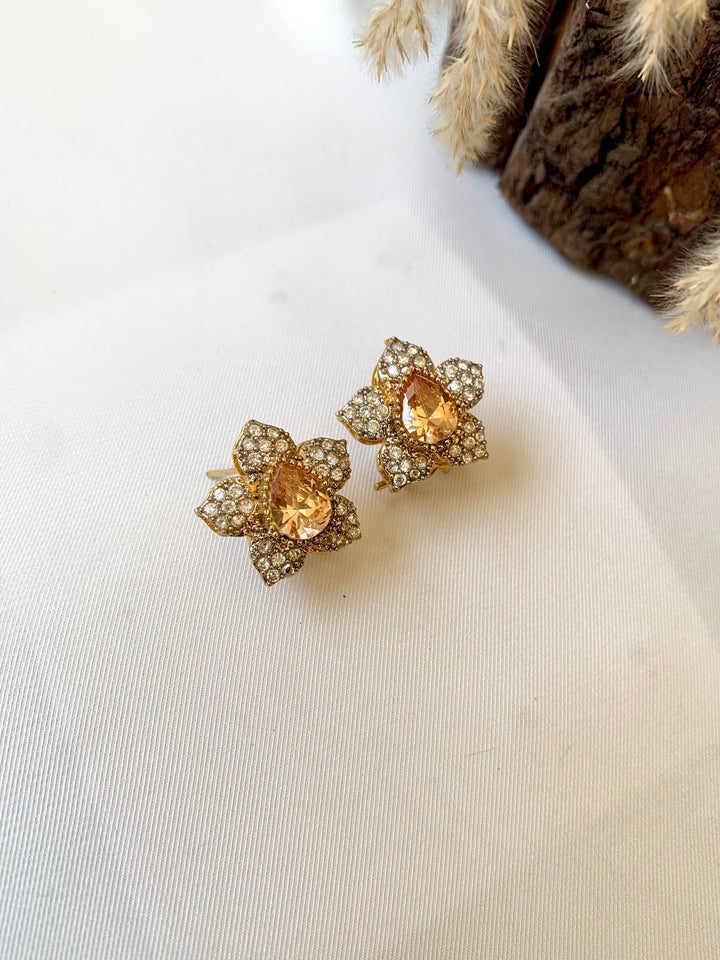 Upgrade your everyday look with our zirconic small flower-shape studs, finished in premium gold plating for a soft, elegant shine.