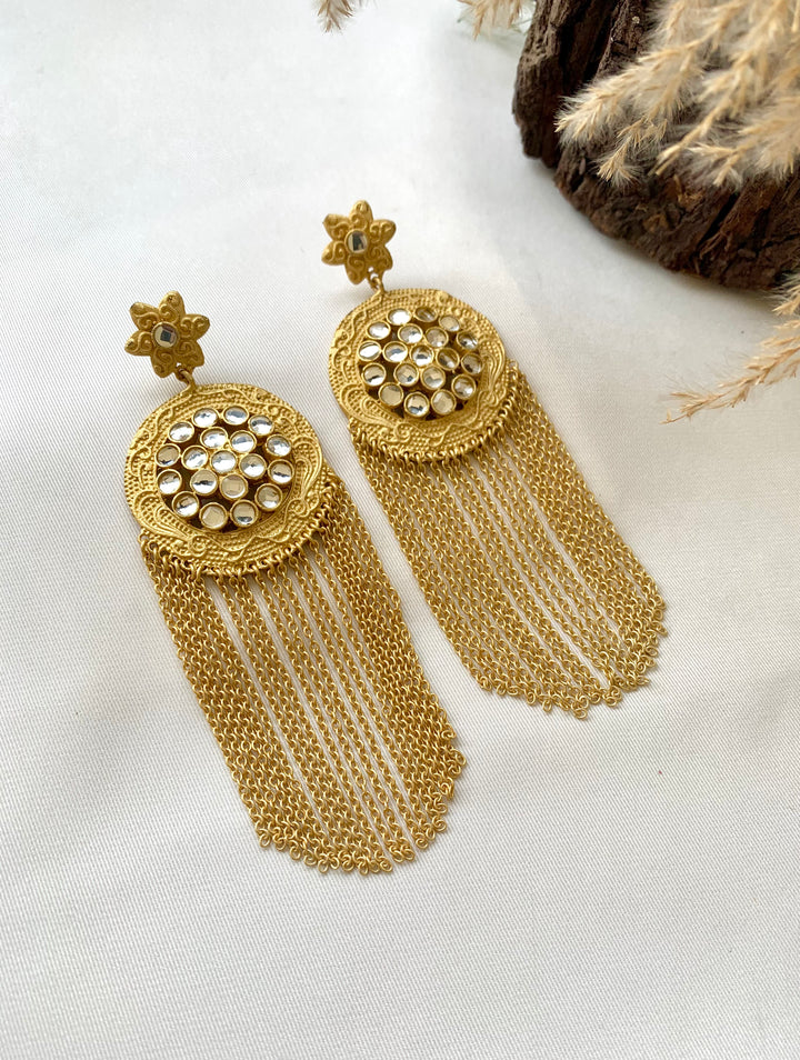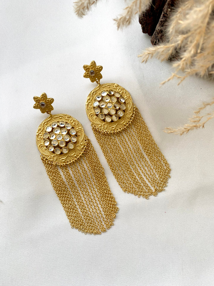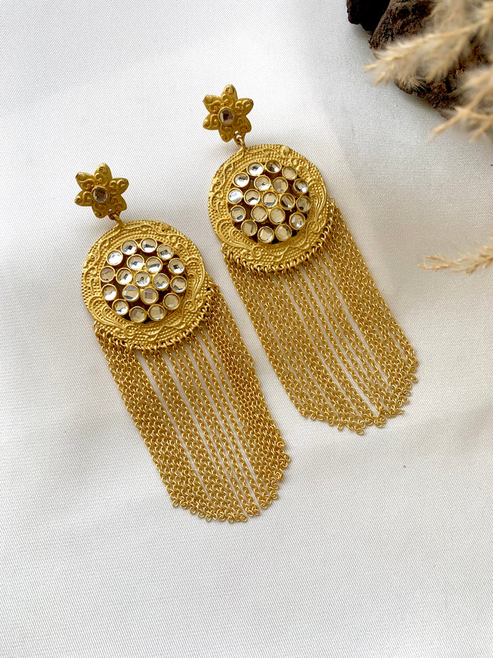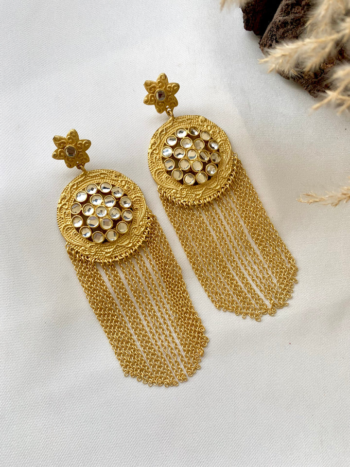 Step into timeless beauty with our Indian Rajwadi Long Earrings, finished in luxurious matte gold polish ✨