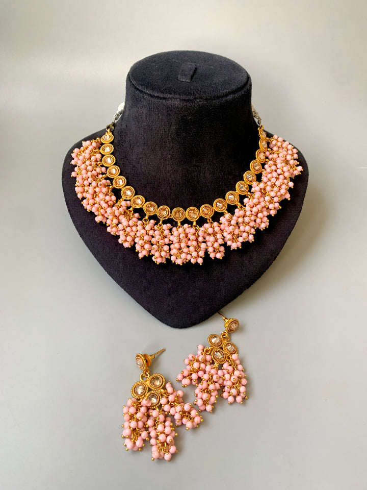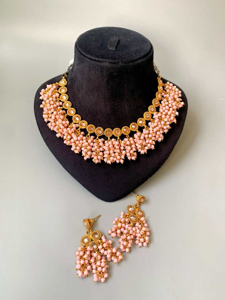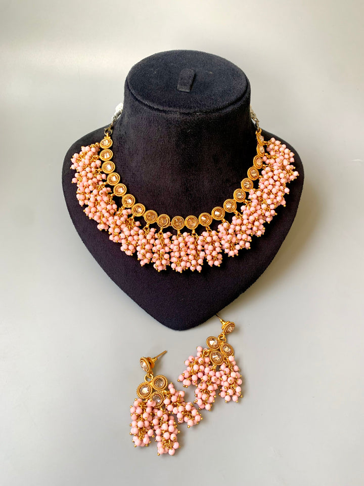 Add a regal charm to your look with our Indian Polki Gujra Necklace, paired with beautifully crafted earrings.