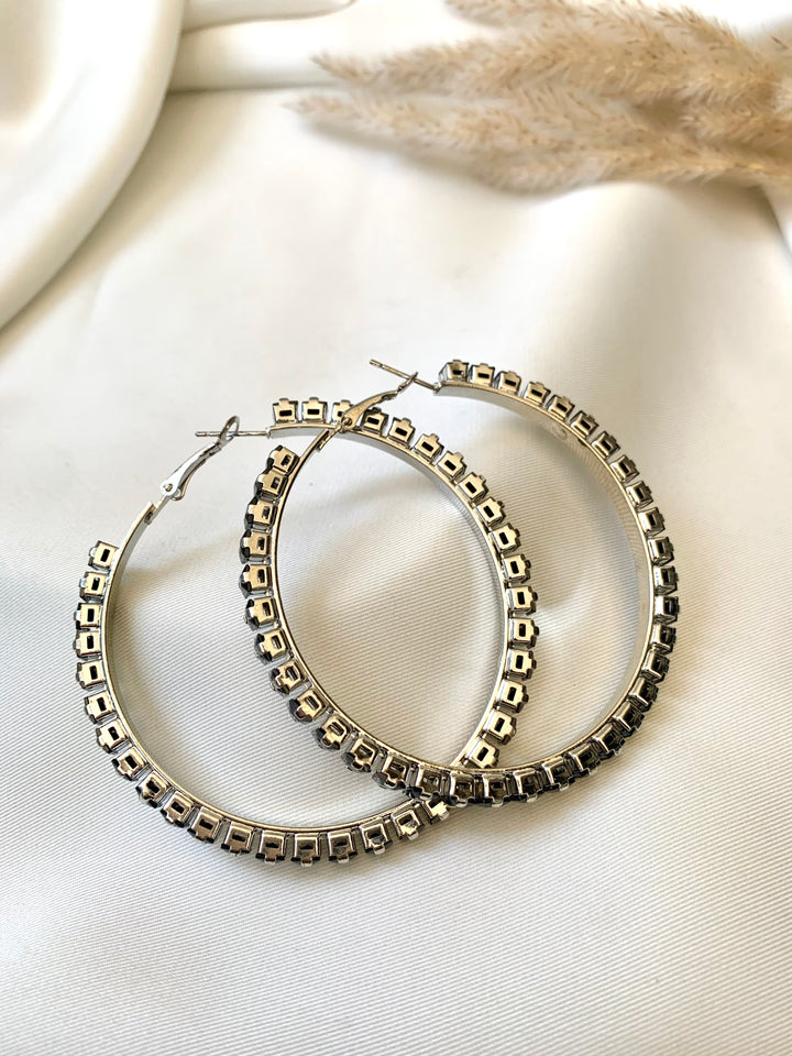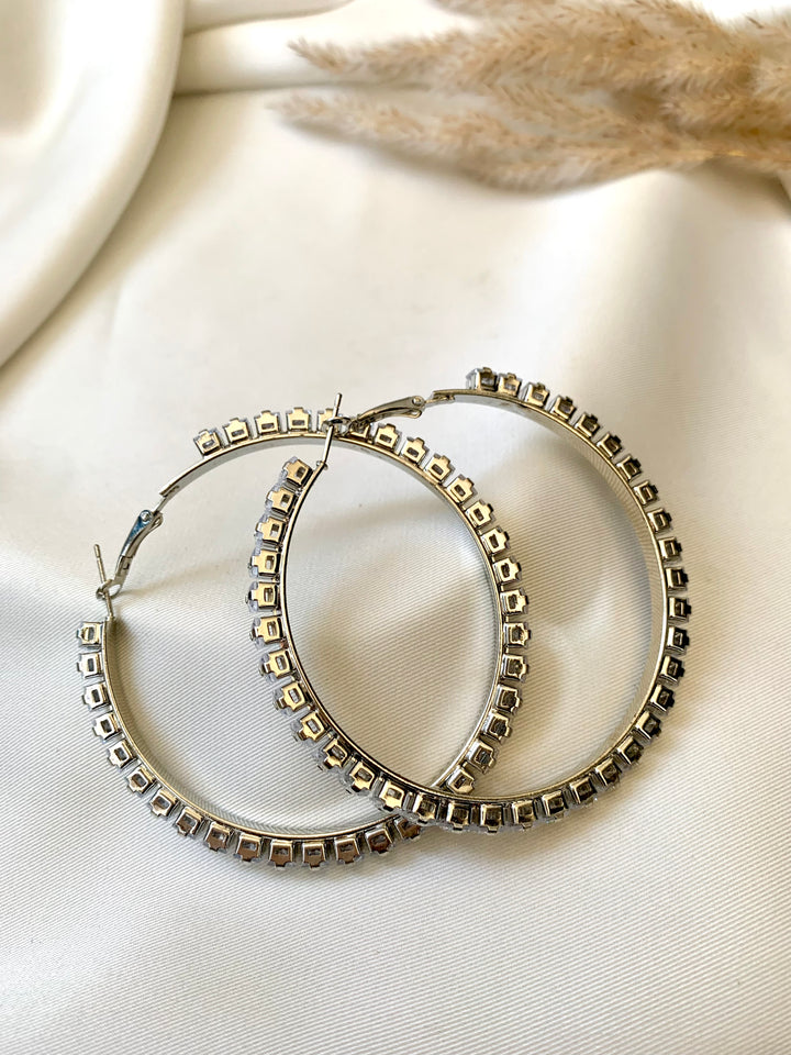 Add a touch of sophistication to your look with these stunning AD Silver Hoops!