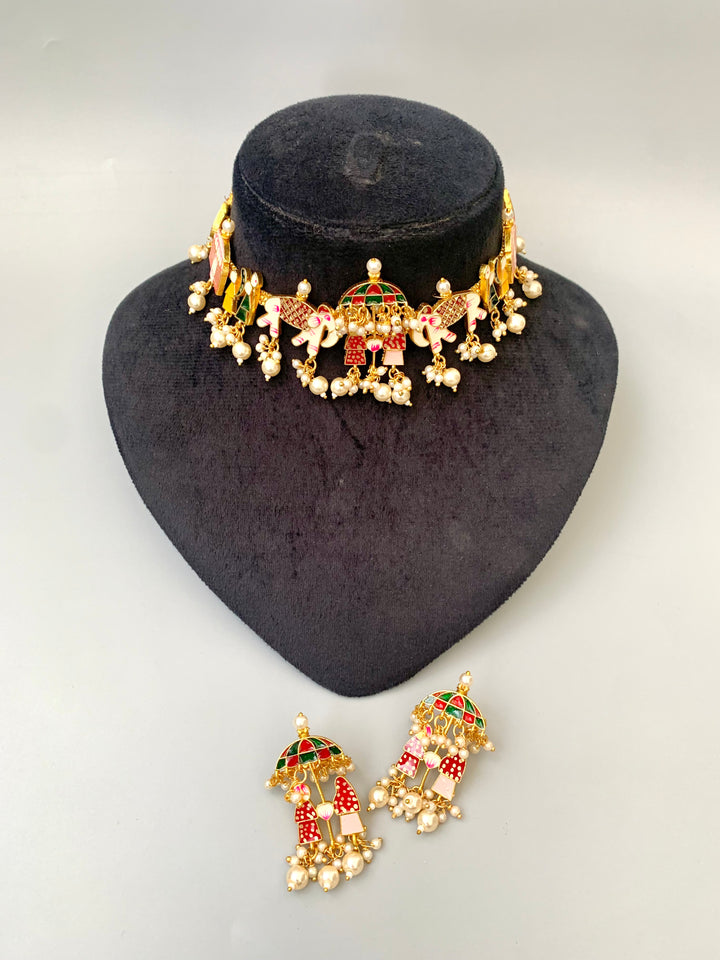 ✨ Band Baja Barat Choker Set ✨With Matching Earrings | Indian Rajasthani Design | High Quality Step into the spotlight with this stunning Band Baja Barat choker set, paired with elegant...
