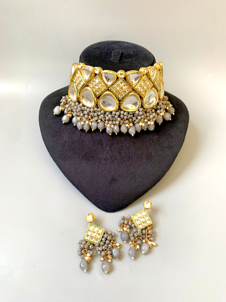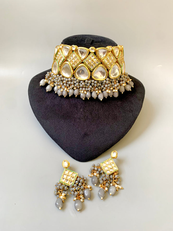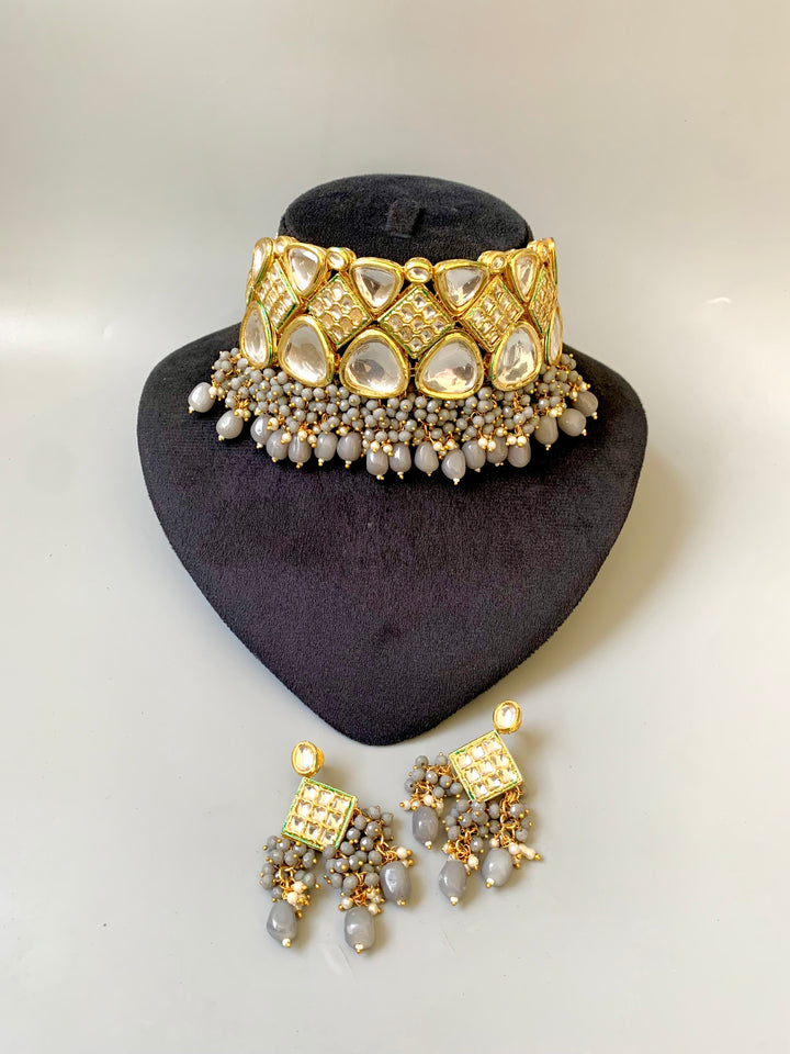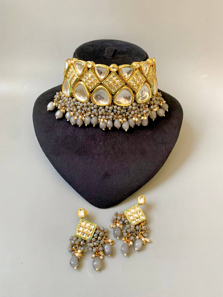 Cimrin Step into timeless elegance with our Indian Thappa Kundan Choker Set, beautifully crafted in traditional Rajasthani style and finished with a luxurious gold plating.Paired with matching earrings, this exquisite set...