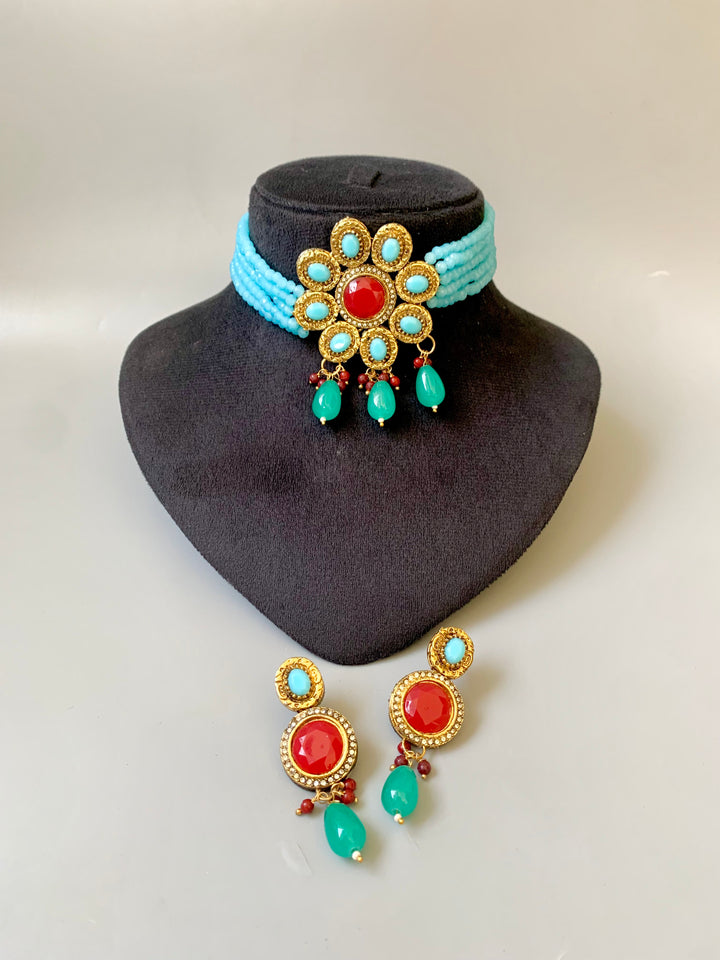 CyraDiscover pure sophistication with our Indian Choker Set, crafted with matte Onyx beads and paired with stunning matching earrings.Perfect for festive events, parties, or elegant evening wear, this set adds a...