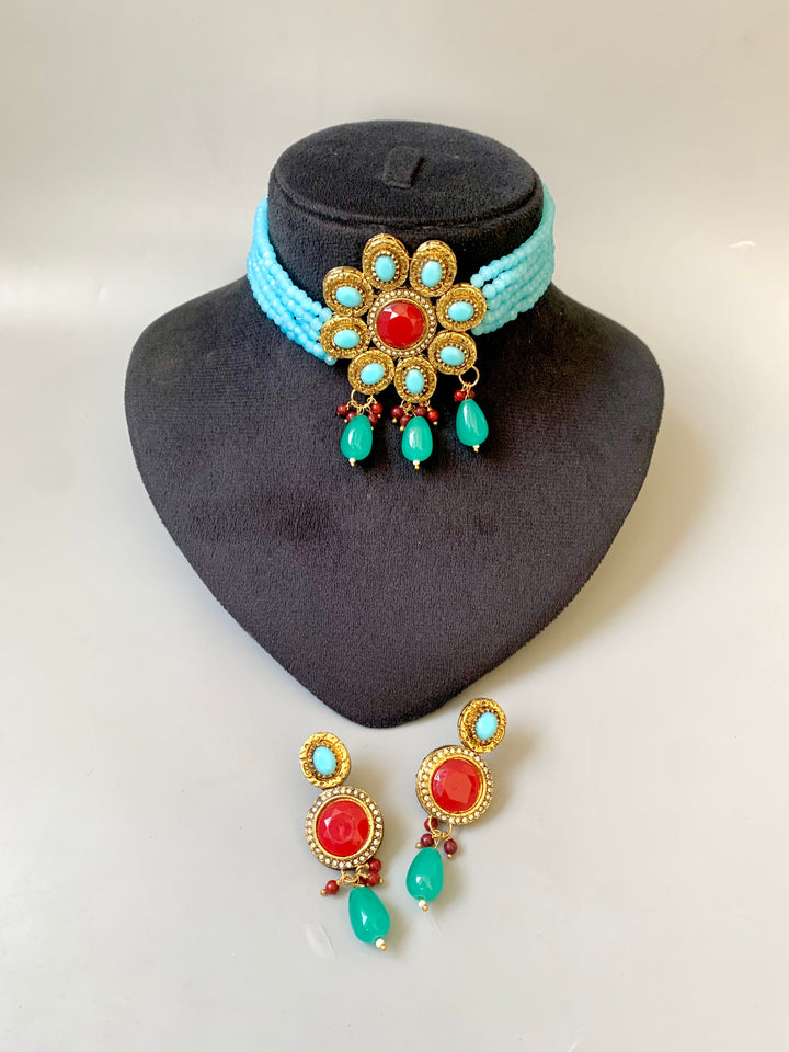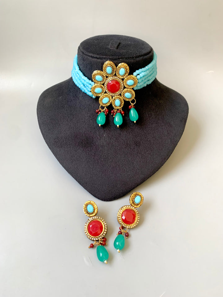 Discover pure sophistication with our Indian Choker Set, crafted with matte Onyx beads and paired with stunning matching earrings.