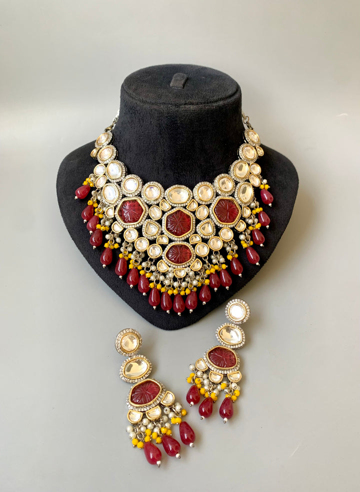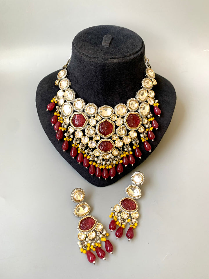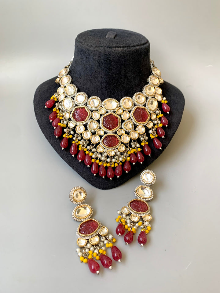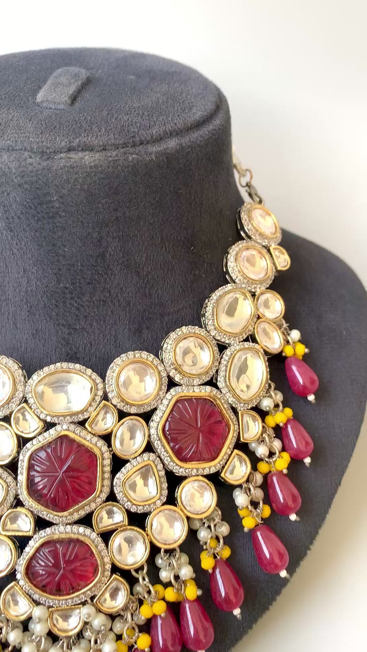 Step into bridal elegance with our Heavy Indian Kundan Amrapali Set, paired with stunning matching earrings.