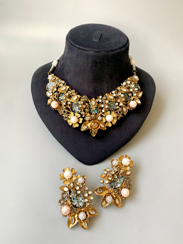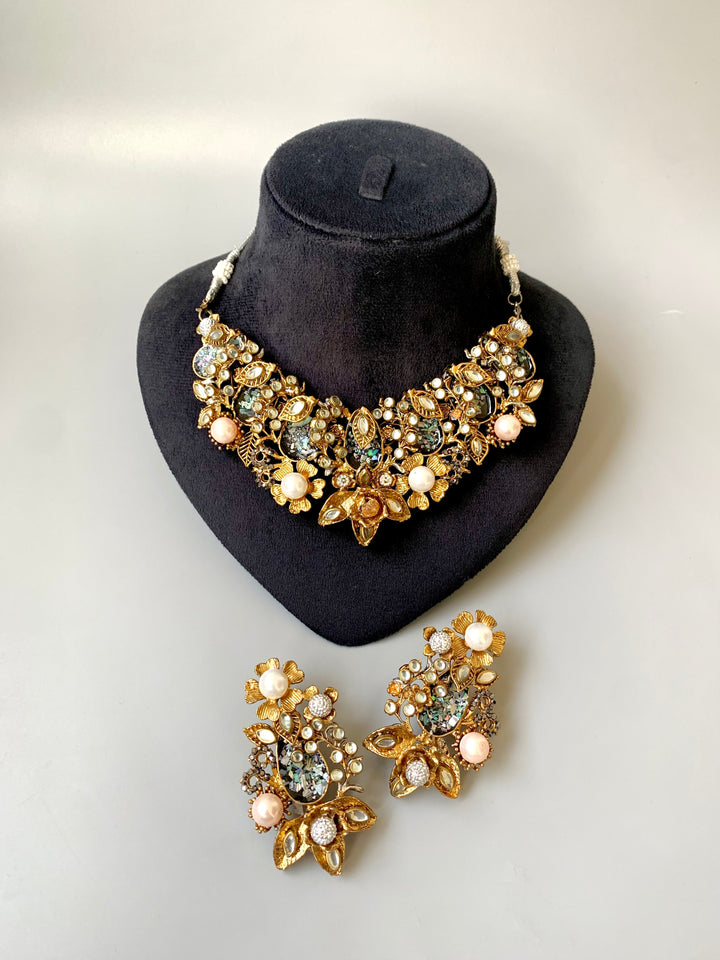 Make a bold style statement with our Turkish Crush Necklace Set, beautifully crafted with premium gold-plated finishing and paired with matching designer earrings.