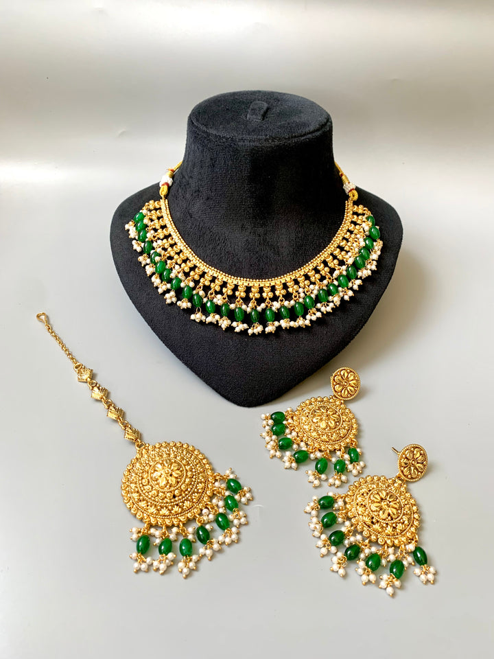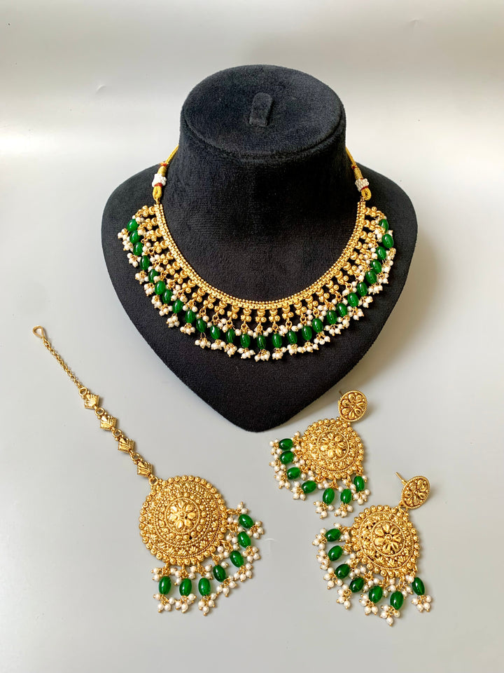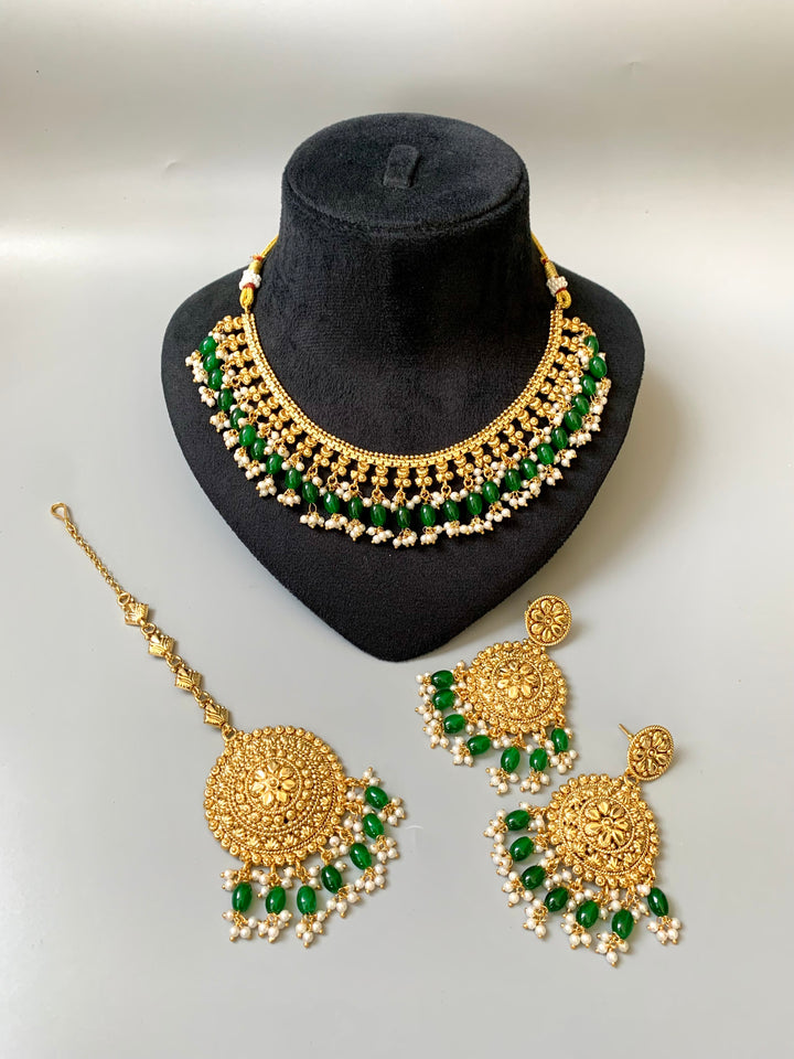 Elevate your bridal look with our Original Rajwari Indian Set, featuring a stunning big tika and exquisite chand earrings. This set embodies the rich heritage of Indian craftsmanship, showcasing intricate designs that reflect royal elegance.