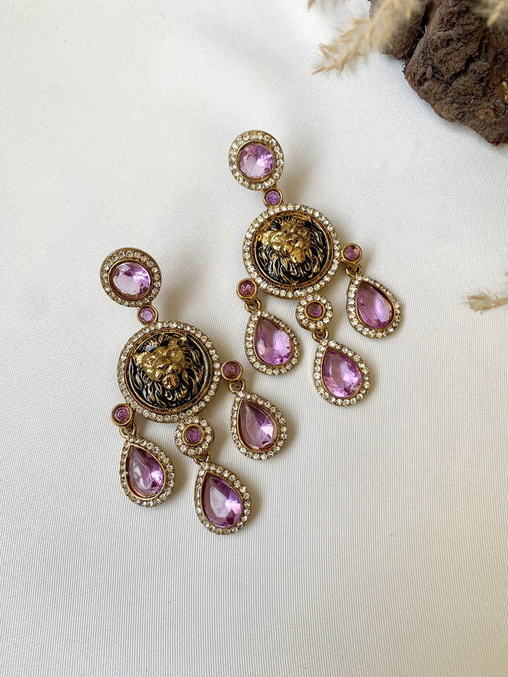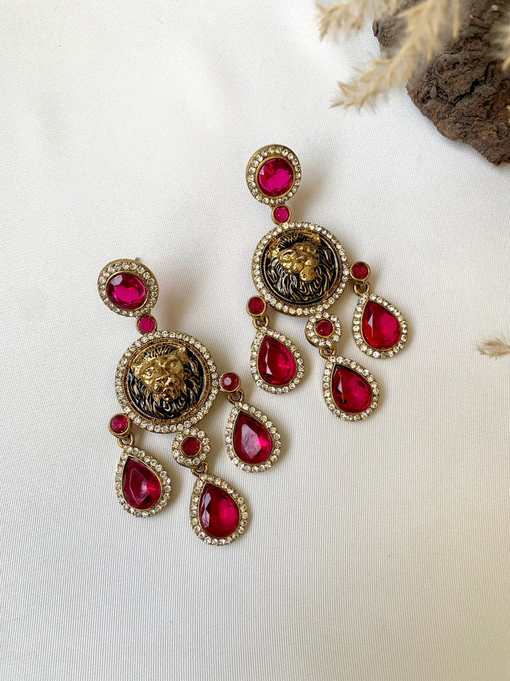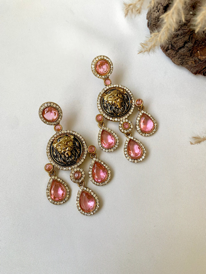 Bold and majestic, these Sabyasachi-inspired earrings feature a striking lion motif, symbolizing power, royalty, and timeless grace.
