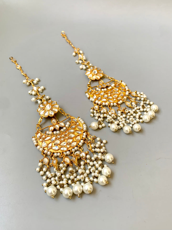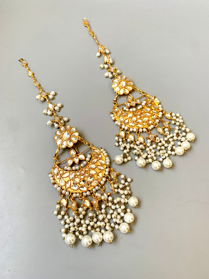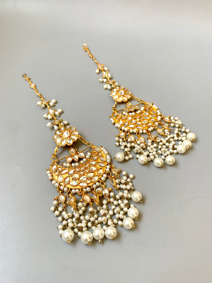 Elevate your traditional look with these Bhawalpuri-style long earrings, beautifully gold-plated and adorned with a delicate Sahara chain for a royal touch.