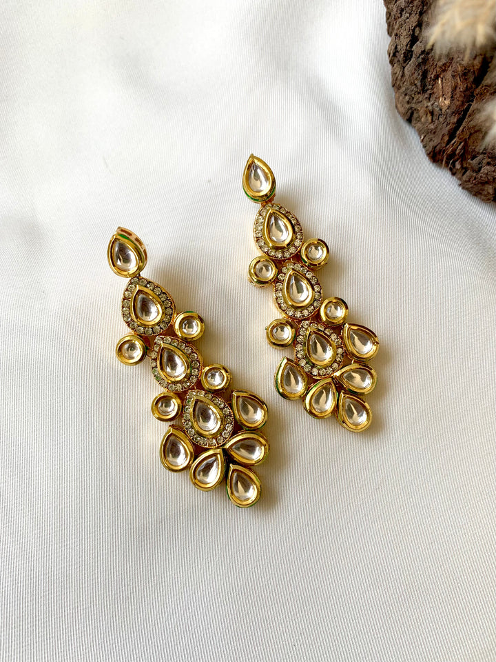 A perfect blend of tradition and elegance. These Indian Kundan earrings feature intricate stone setting with stunning back Meena (enamel) detailing, giving them a premium, handcrafted finish.