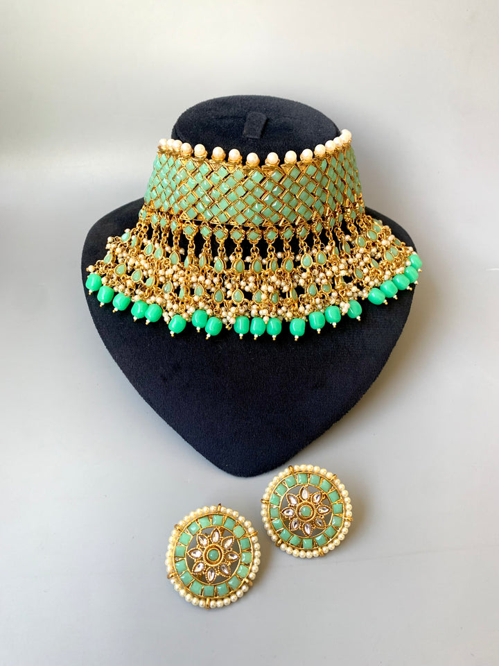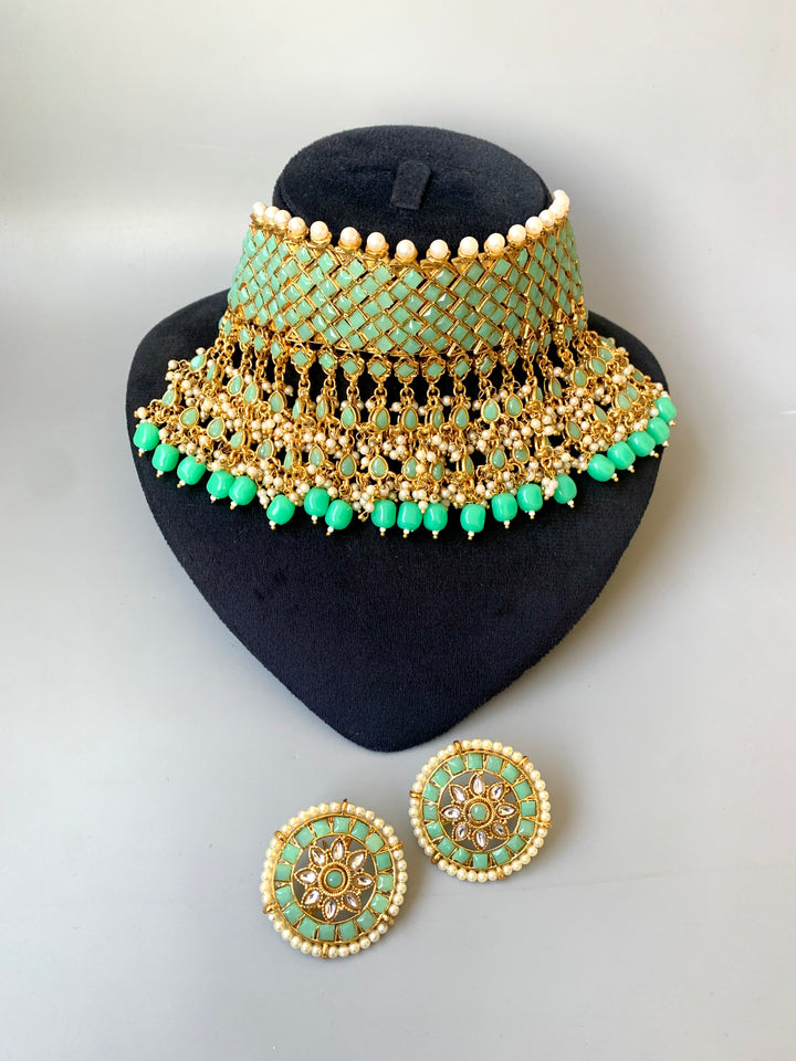 Add a touch of regal charm to your style with our Indian heavy choker, crafted with exceptional detail and paired with elegant matching studs. Designed to give a rich, traditional look perfect for any celebration.