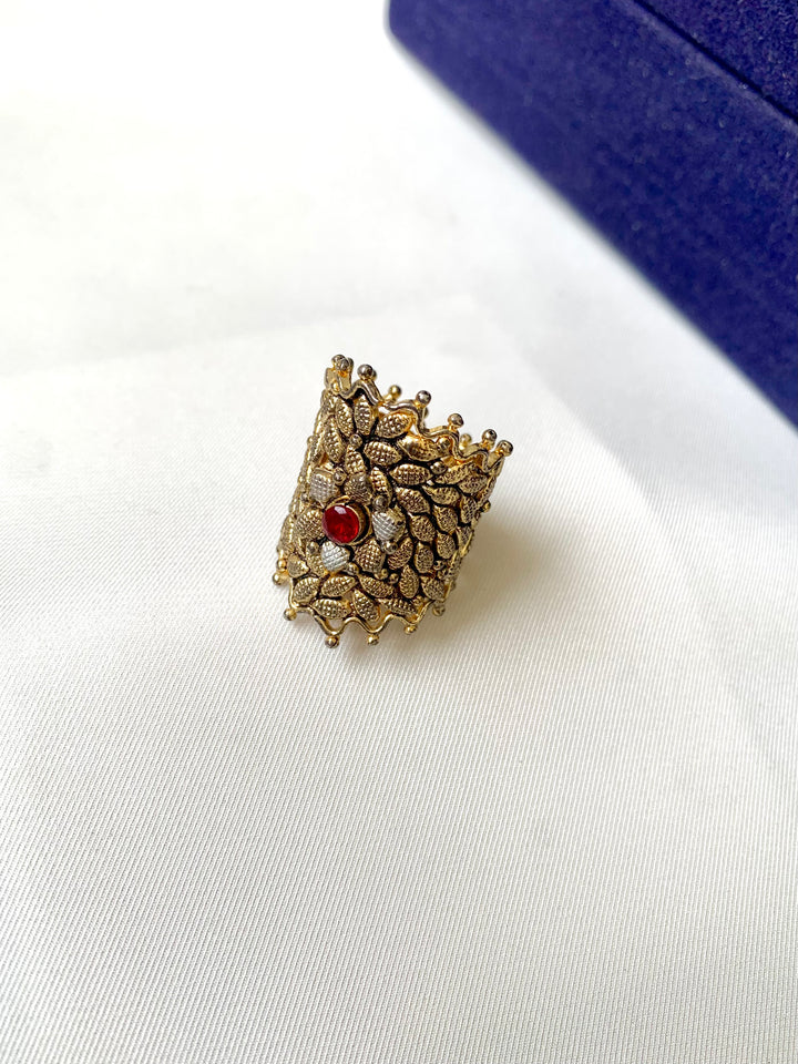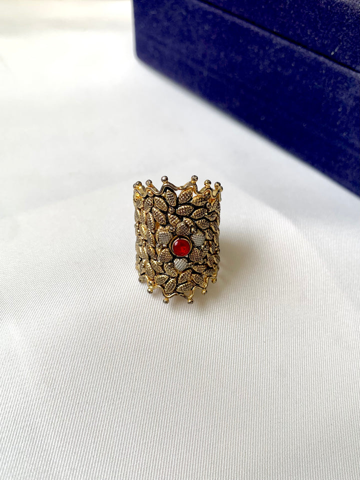 Handcrafted with intricate detailing and a rich antique finish, this ring is a perfect blend of traditional art and modern style.
