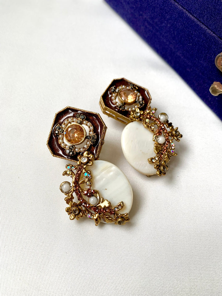 🌿 #HandmadeJewelry #LeafEarrings #CarvedStone #ElegantStyle