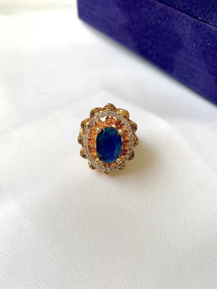 Sindhu Add a royal touch to your look with our Gold Plated RP Jarao Ring, crafted with exquisite detailing and shine just like real gold. πβ¨This elegant ring is free size...