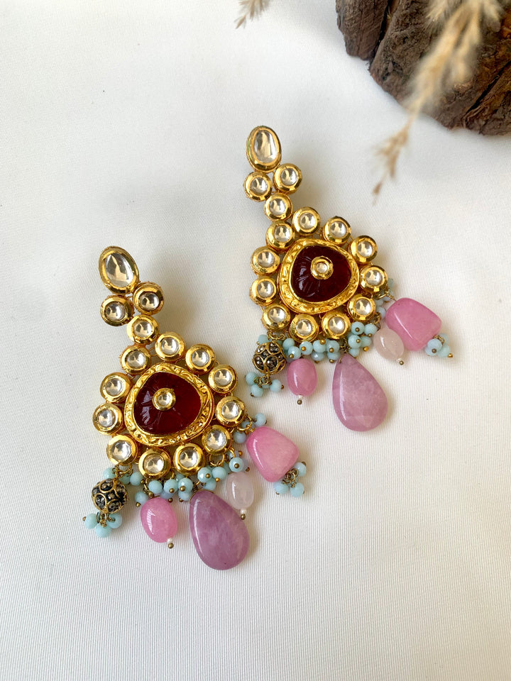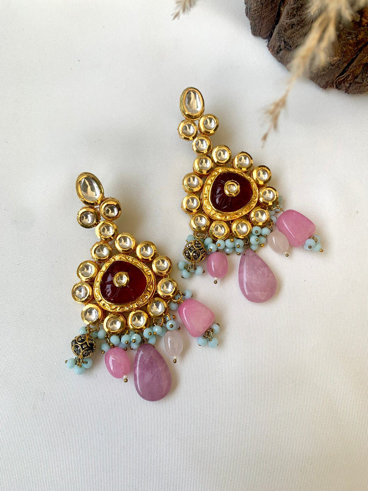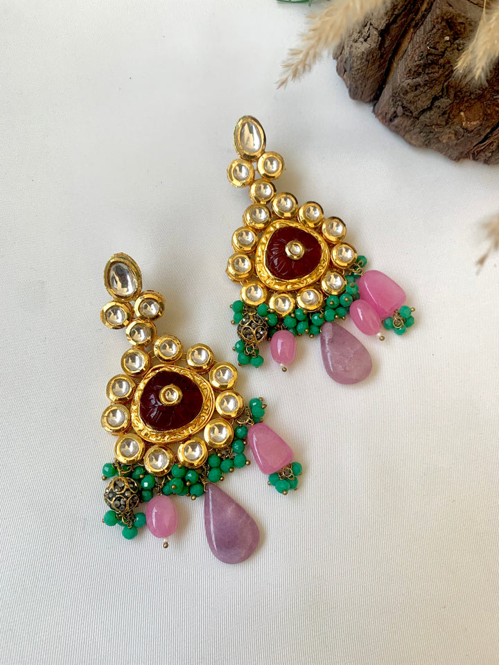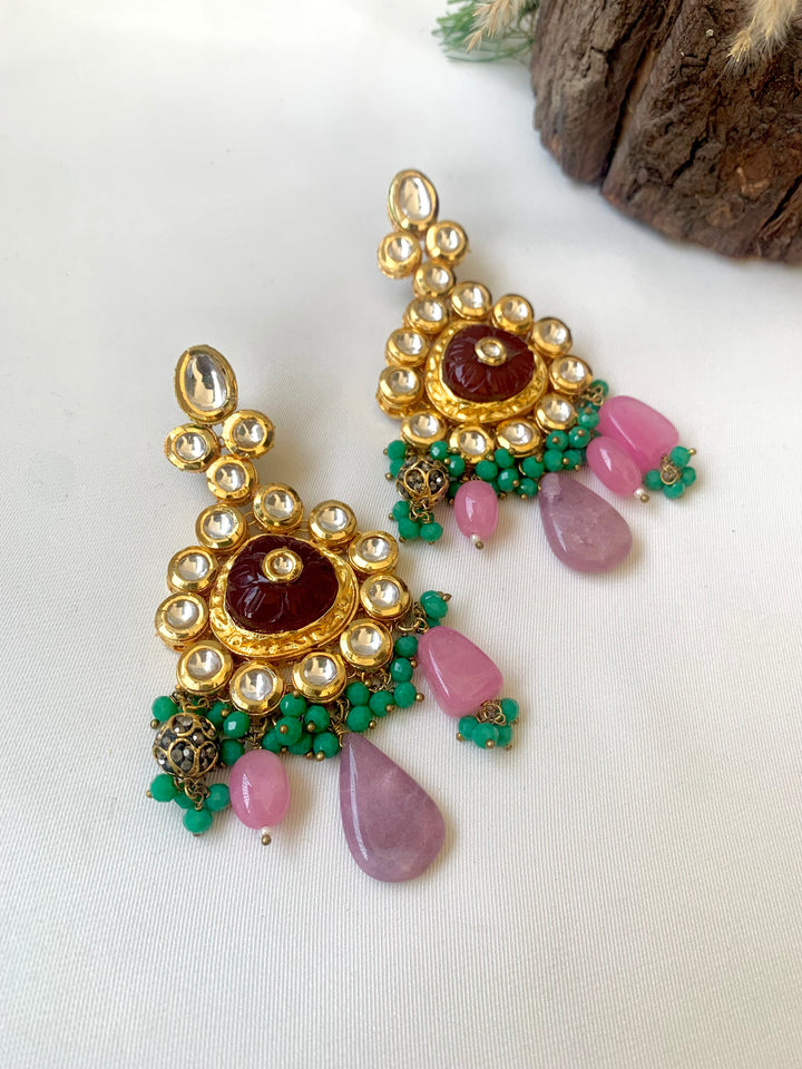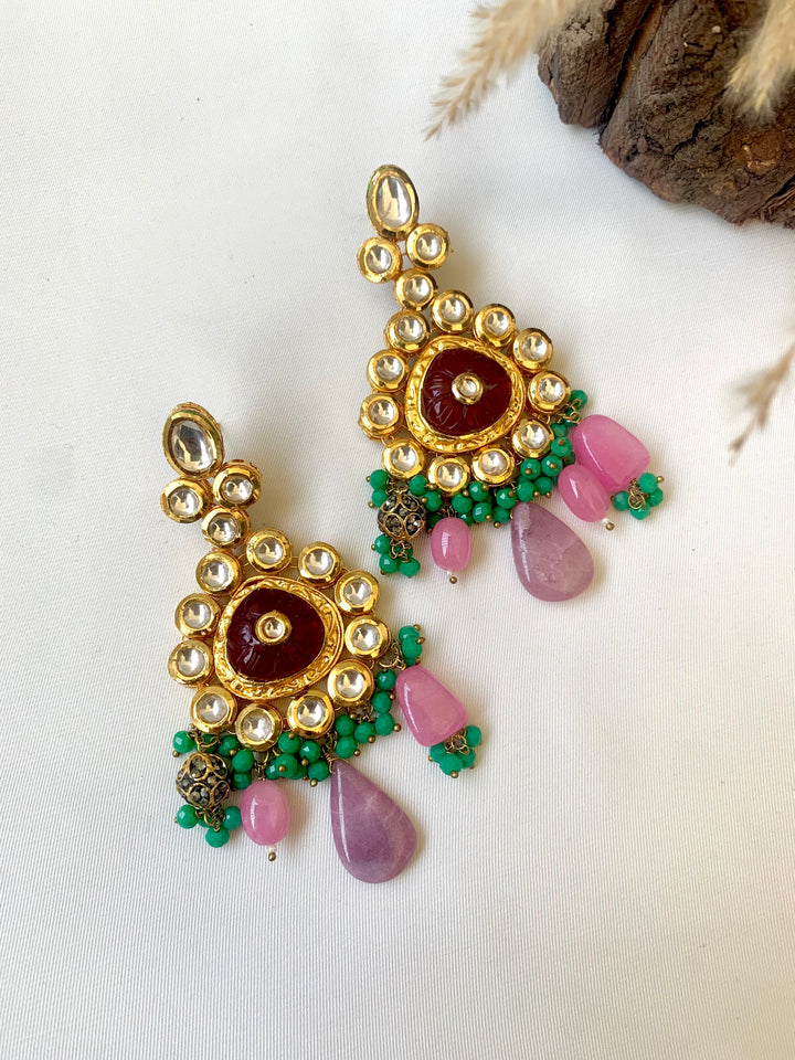 Step into timeless elegance with our Indian Rajasthani Kundan Heavy Earrings, beautifully detailed with back Meena work.